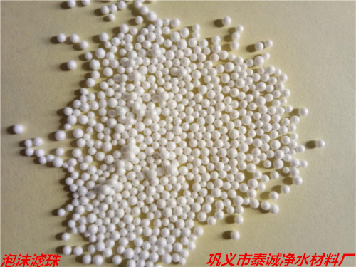 聚苯稀泡沫滤珠是由出口聚苯乙烯树脂颗粒经低温两次发泡制成的白色球状滤料。若将其掩盖于压力综合净水器的上部,当混浊度500mg/L的原水经过这种泡沫塑料颗粒过滤层过滤后,出水浊度可降低到5mg/L,到达国度饮用水规范 。